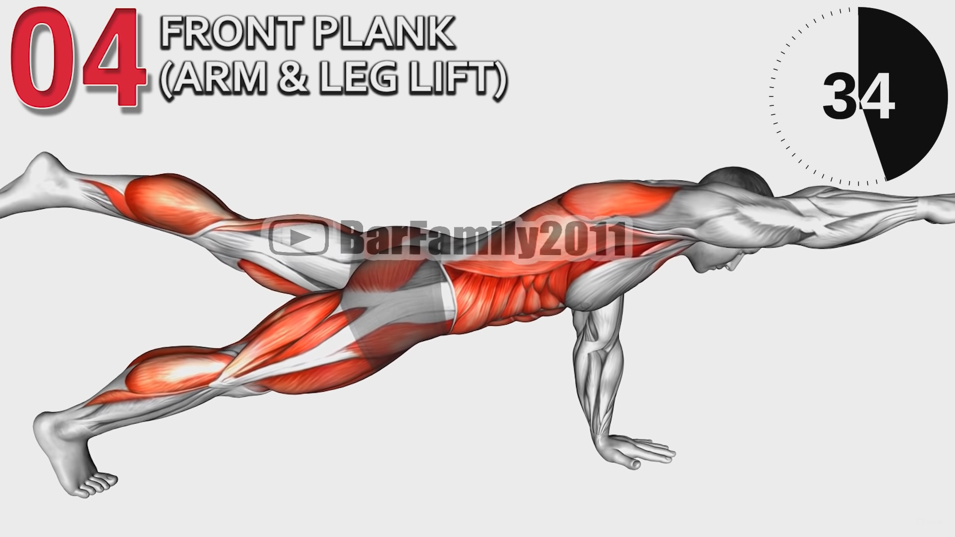 Naprzemiennie podnoś rękę i nogę, zachowując równowagę i napięcie mięśni, i oddychaj równo przez 45 sekund.