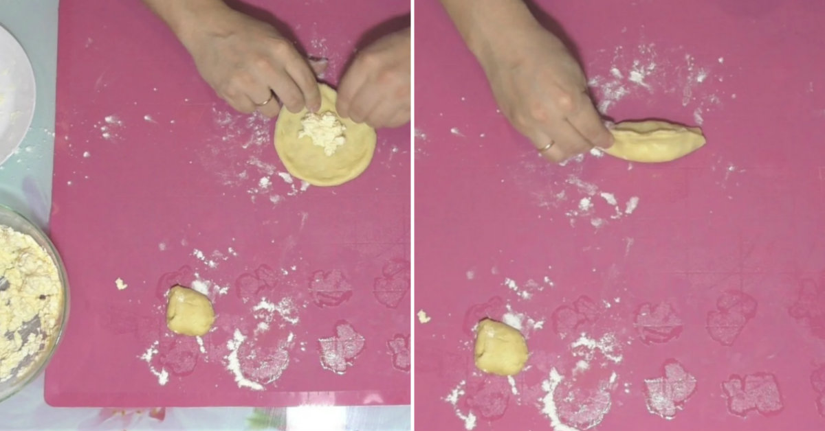 W tym celu należy oddzielić jeden kawałek ciasta, posypać mąką i rozgnieść za pomocą wałka. Na sam środek trzeba dodać nadzienie i złączyć wszystkie rogi ciasta.