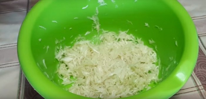 Poszatkuj drobno 400 g kapusty (ok. pół główki). Przełóż do wysokiej miski i dodaj pokrojoną w bardzo drobną kosteczkę cebulę.