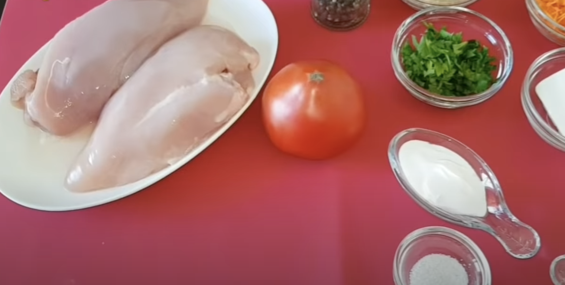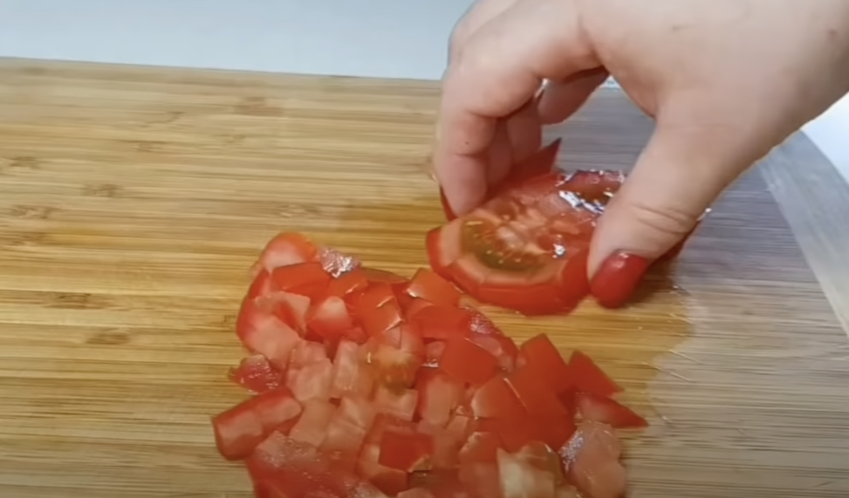 Posól, popieprz i posyp ulubionymi ziołami. Mięso włóż do lodówki na 30 minut. W międzyczasie pokrój w kostkę umyte pomidory.