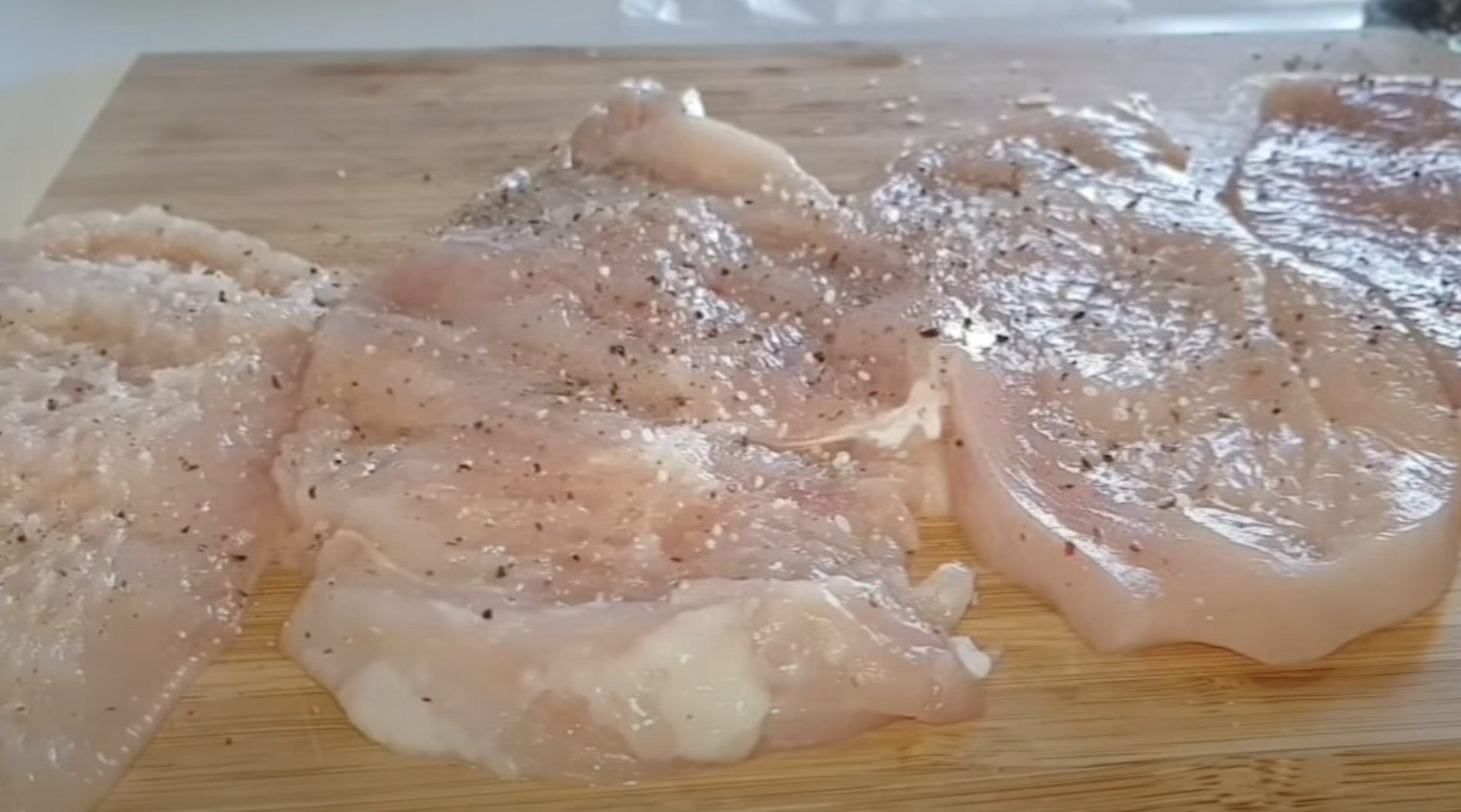 Piersi z kurczaka umyj, osusz papierowymi ręcznikami. Pokrój w cienkie plasterki.