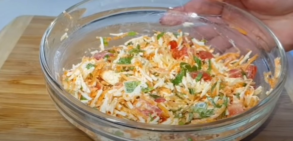 Zetrzyj twardy ser i wymieszaj go z serkiem topionym. Marchewkę zetrzyj na tarce, posiekaj zioła i dodaj je do miski z serami i pomidorami.
