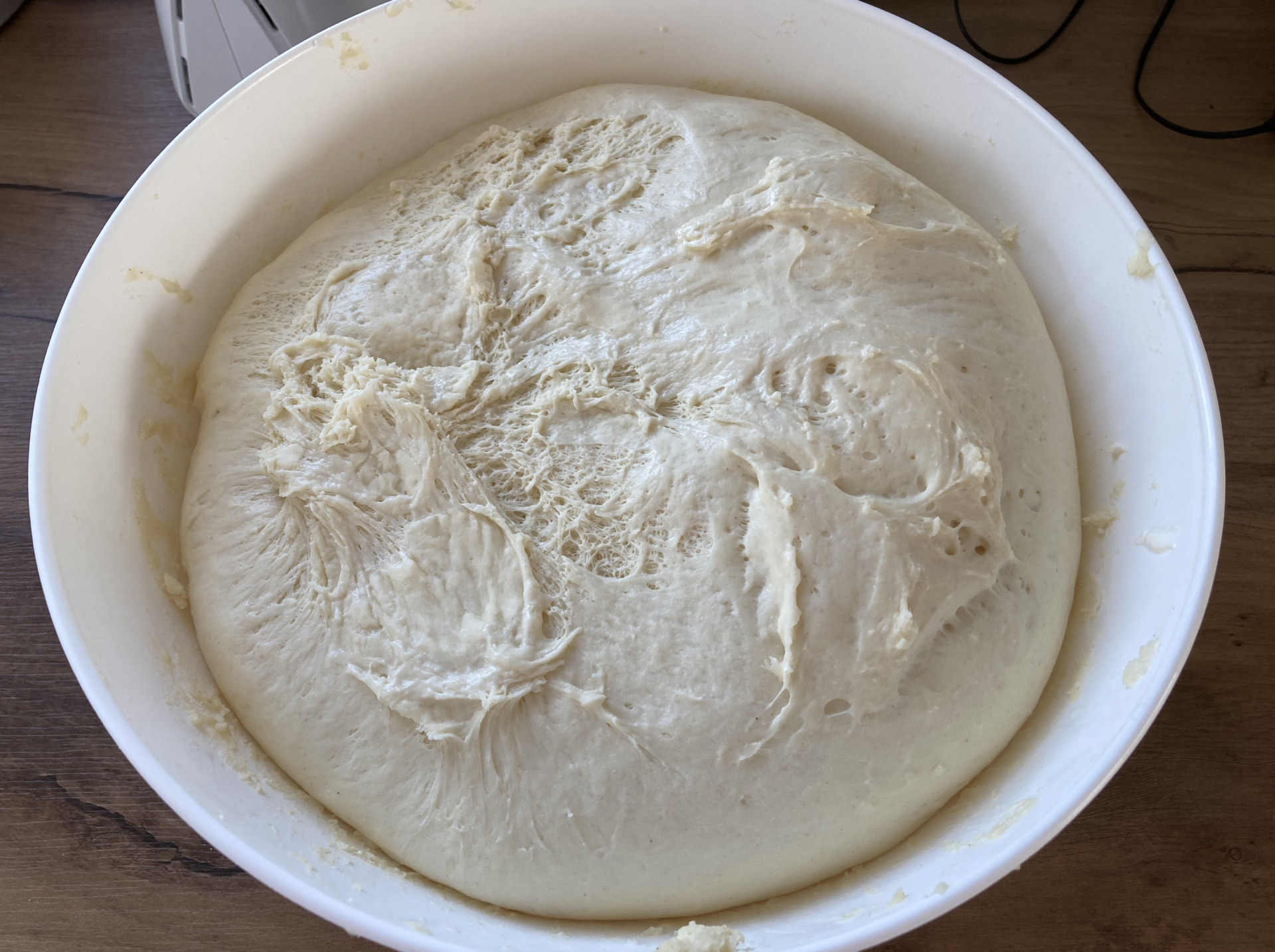 Przykryj wyrobione ciasto i odstaw je na ok. Godzinę czasu, do wyrośnięcia. Po odpowiednim czasie dodaj resztę mąki i porządnie wymieszaj. Ponownie przykryj ciasto i odstaw na godzinę. Po upływie czasu, ciasto jest gotowe do tworzenia puszystych bułek, ciastek i innych pysznych wypieków! Powinno ono urosnąć trzykrotnie.