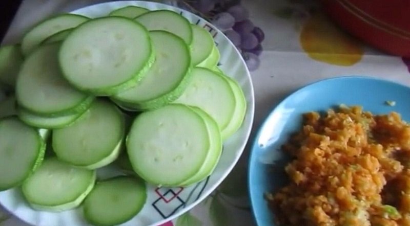 Najpierw musisz umyć cukinię i pokroić w plasterki. Najlepiej, aby grubość pokrojonych kawałków nie przekraczała pół centymetra. Marchewki, czosnek i paprykę zmiel w maszynce do mięsa.