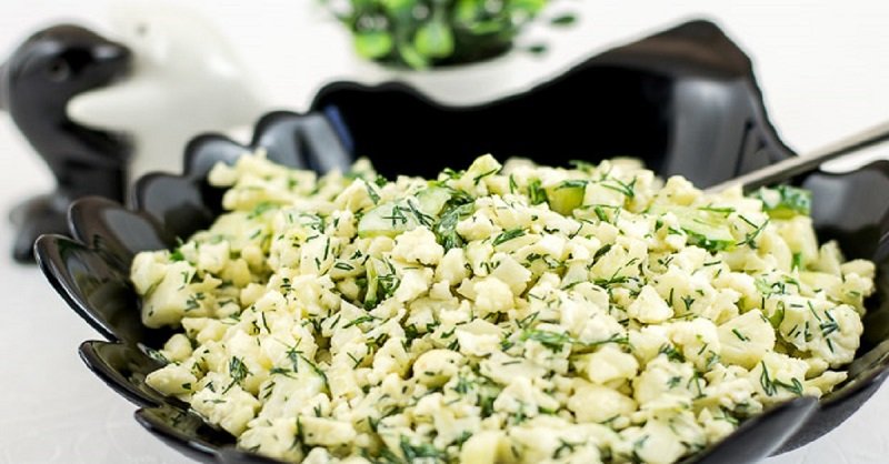 Kalafiora włóż do miski, dodaj ogórki, koperek i sos czosnkowy.