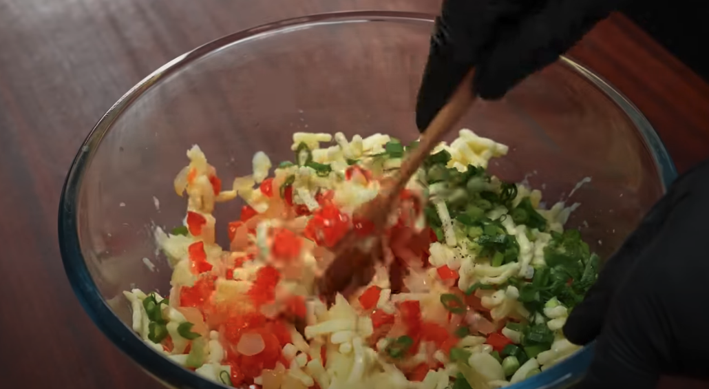 Dodaj warzywa do puree ziemniaczanego. Dodaj sól, pieprz, mozzarellę i cebulę dymkę. Wszystko dobrze wymieszaj. W misce wymieszaj mąkę, sól i cukier. Dodaj jajka i mleko, mieszając, aż uzyskasz gładką konsystencję. Dodaj olej i ponownie wymieszaj. Rozgrzej patelnię na średnim ogniu i delikatnie nasmaruj olejem.