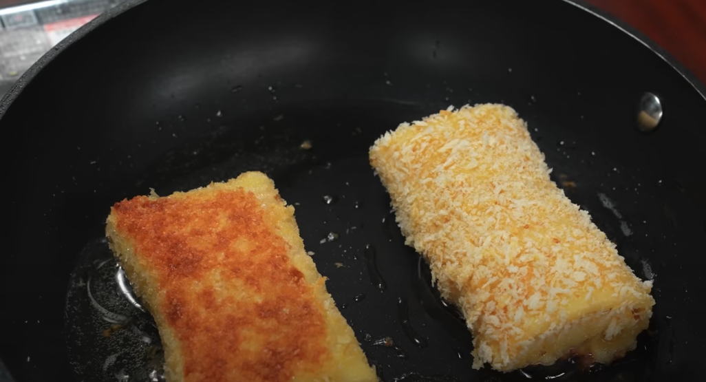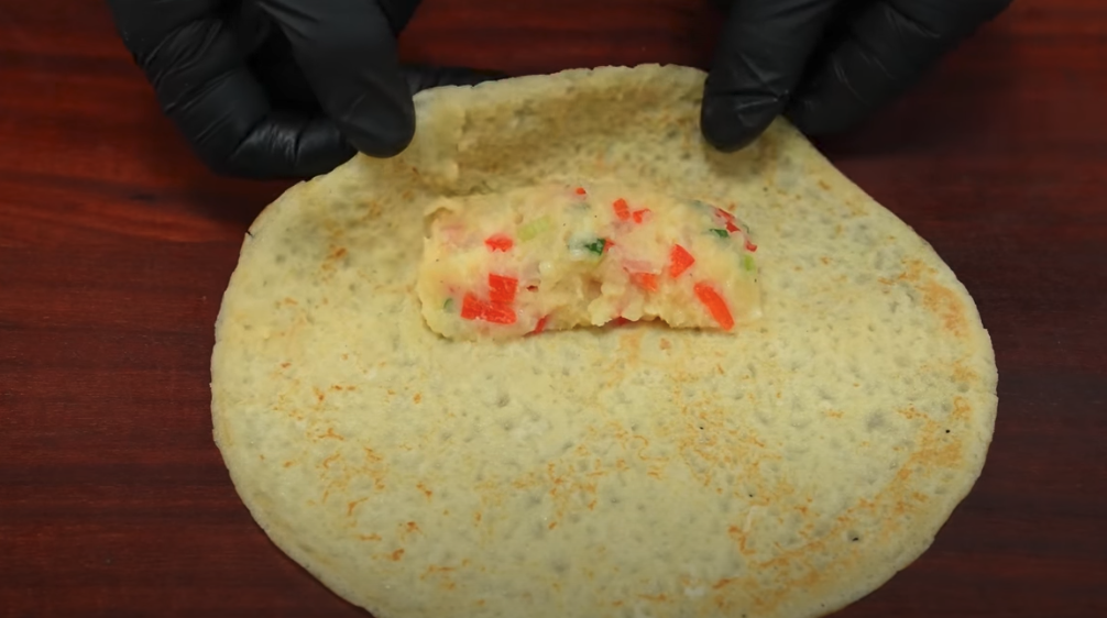 Wylej miarkę ciasta na patelnię i rozprowadź równomiernie. Smaż naleśniki z każdej strony przez 2 minuty. Nałóż porcję farszu ziemniaczanego na naleśnik. Zawiń boki naleśnika, a następnie zwiń go, tworząc bułkę. Roztrzep 3 jajka w misce. Zanurz każdą bułkę w mieszance jajecznej, a następnie obtocz w bułce tartej.