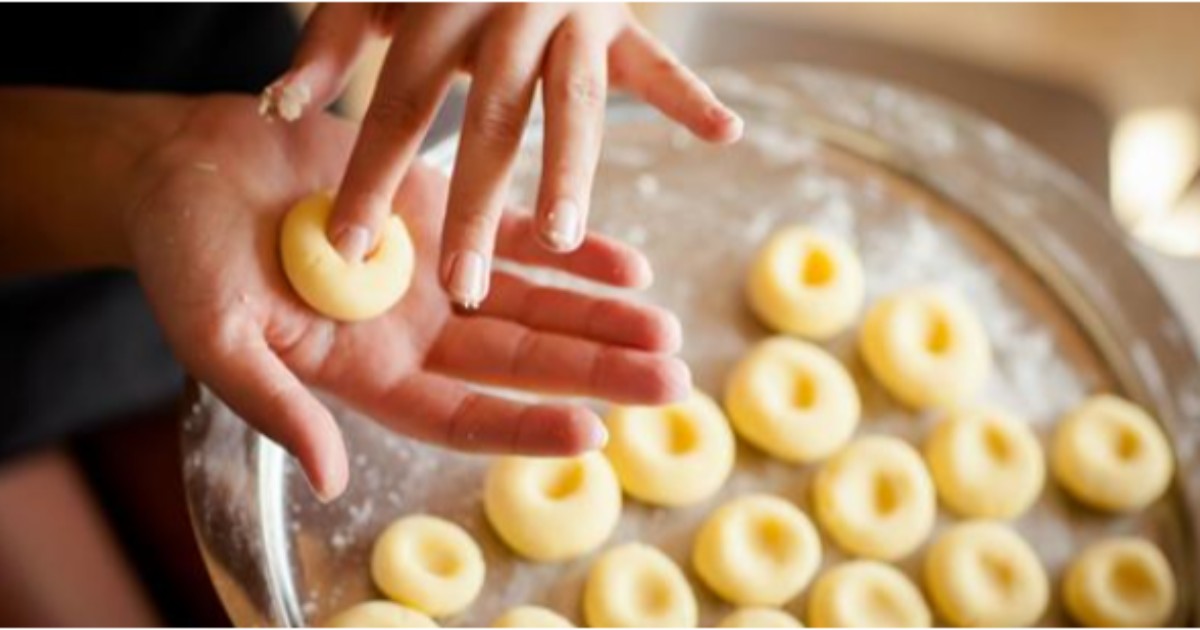 Możemy je lekko spłaszczyć w dłoniach, po czym tworzymy tradycyjną dziurkę, naciskając palcem na środek kluski. Prawdopodobnie przyczynia się ona do równomiernego gotowania klusek, a także dodaje walorów estetycznych, gdy podajemy kluski z sosem.