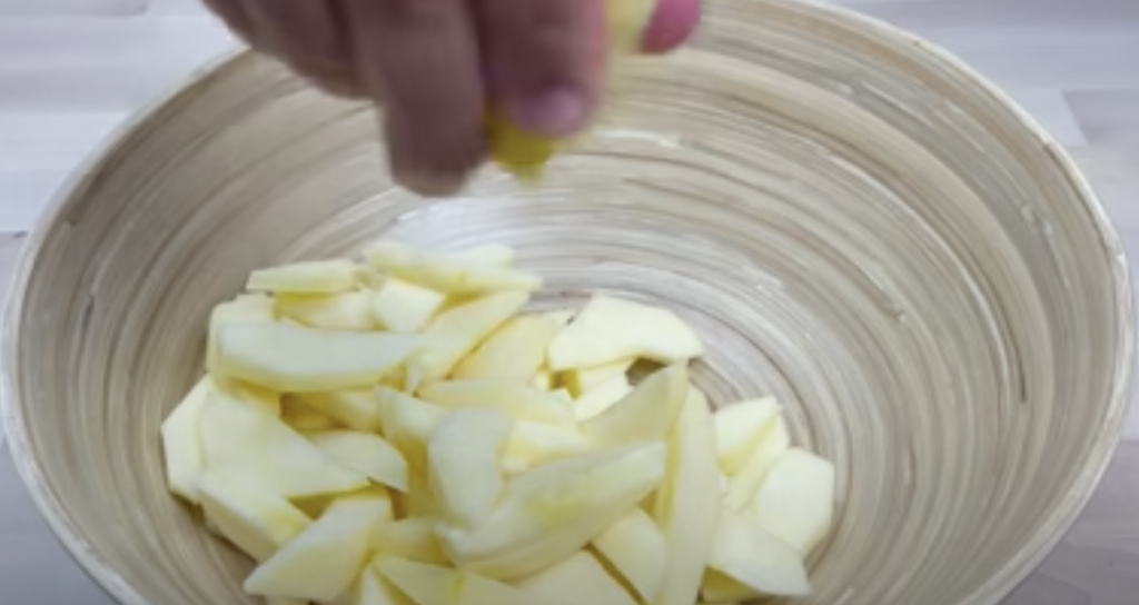 Skrop sokiem z cytryny i odstaw na chwilę, aż ciasto będzie gotowe.