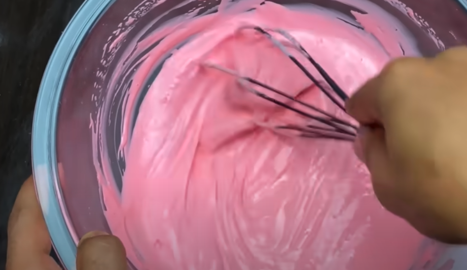 Upewnij się, że wszystkie składniki są gotowe do użycia. Do dużej miski wlej 2 opakowania śmietany. Dodaj opakowanie soku ananasowego. Dokładnie wymieszaj, aż masa będzie jednolita. W osobnej misce wlej pozostałe 2 opakowania śmietany. Dodaj opakowanie soku truskawkowego. Dokładnie wymieszaj, aż masa będzie jednolita.