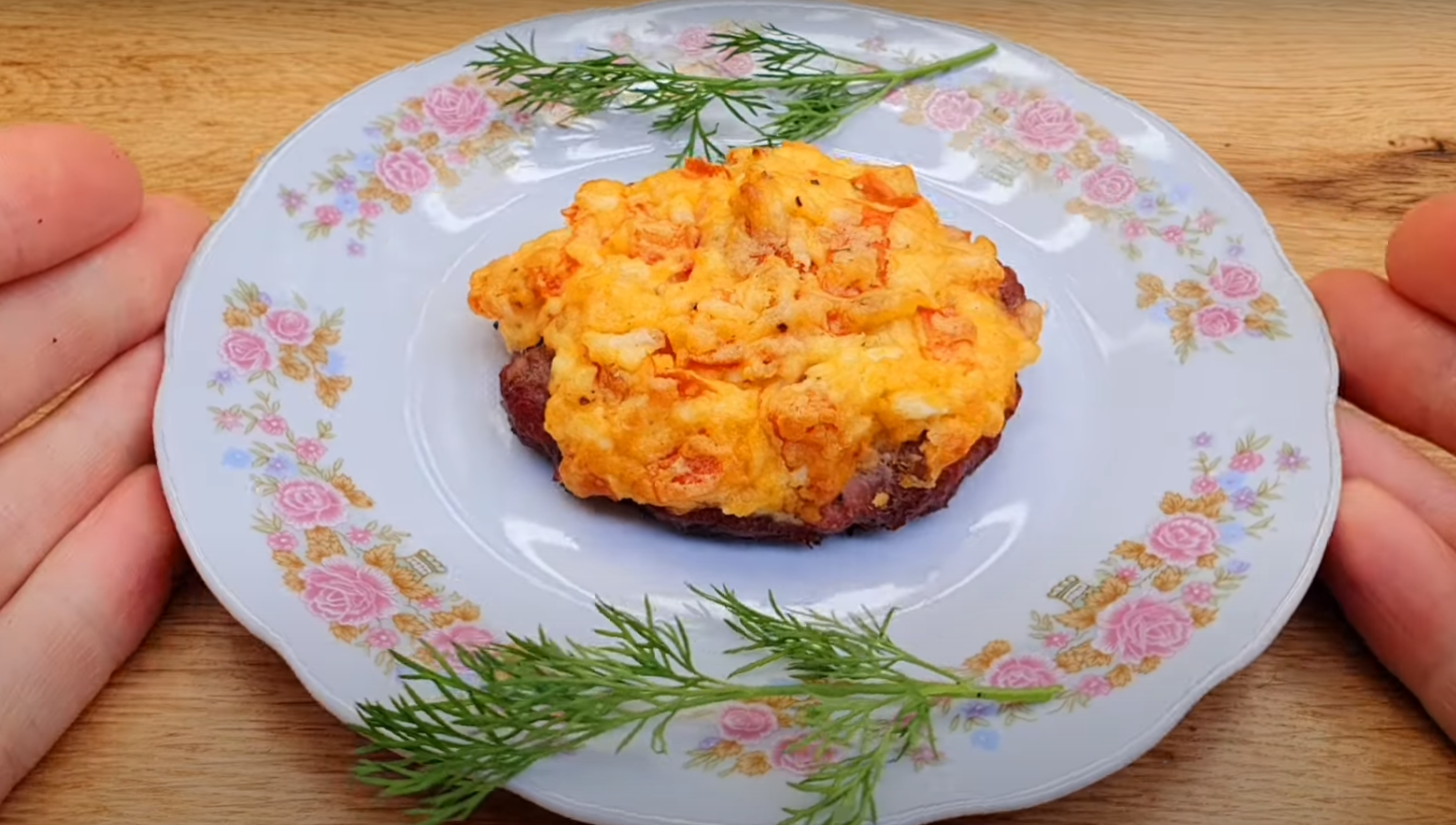 Z mięsa uformować klopsiki, a następnie ułożyć je na blasze przykrytej folią. Na każdym klopsiku ułożyć jajeczną masę. Piekarnik nagrzać do 180º C i wstawić blachę. Piec około pół godziny.
