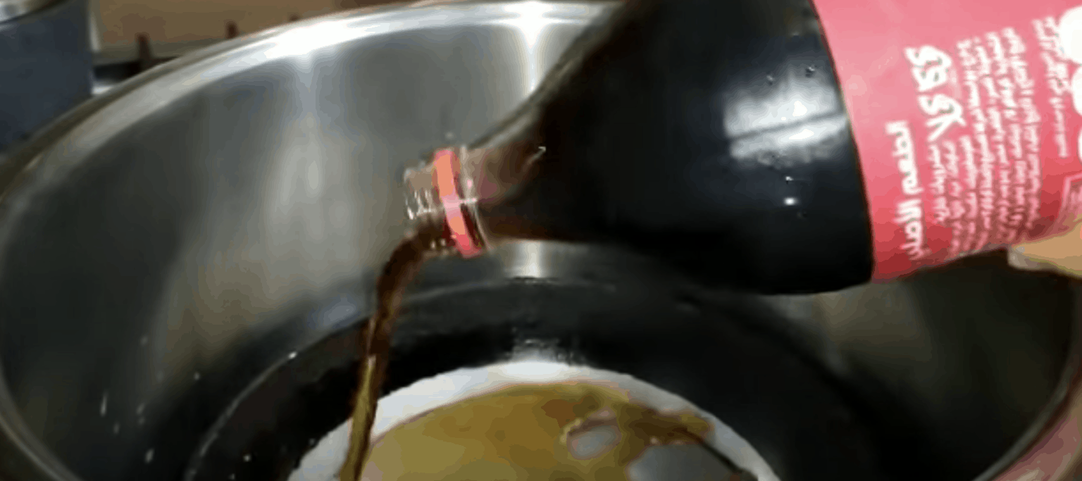 Do dużego garnka włożyłam spaloną patelnię, zalewając ją colą.