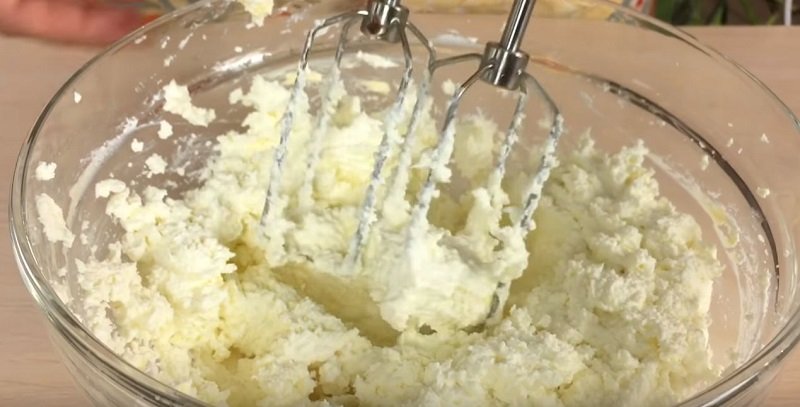 Twaróg rozgniatamy w misce, a następnie blendujemy. Dodajemy do niego wanilię oraz cukier według uznania.