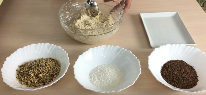 Herbatniki i orzeszki mielimy. Po zmieleniu wsypujemy je do wcześniej przygotowanego twarogu, mieszamy. Pozostaje formowanie kulek z przygotowanej masy, a następnie obtoczenie ich w wybranych – ulubionych składnikach.