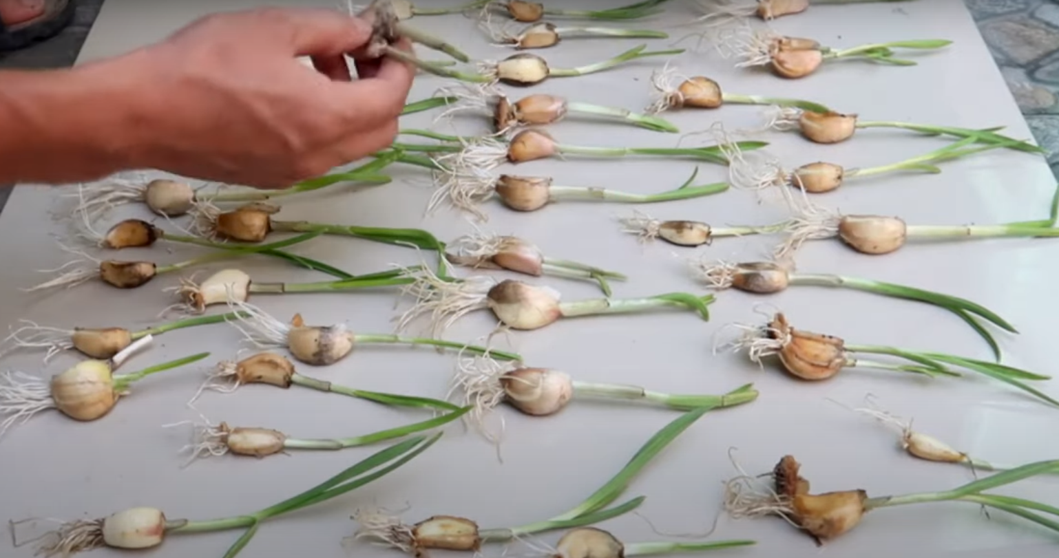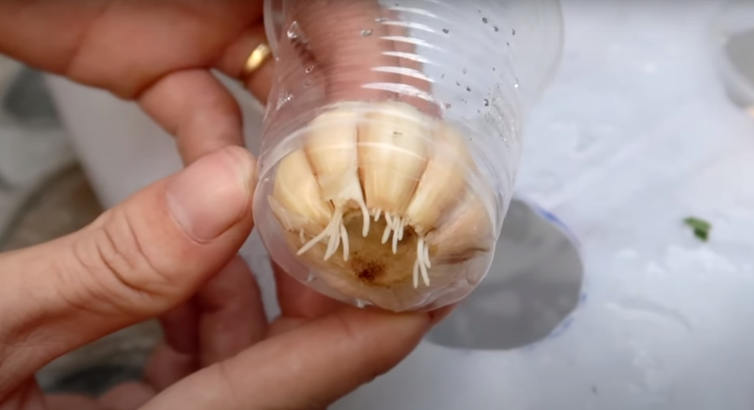 Po 3 dniach zauważysz pierwsze korzenie wychodzące z główek czosnku.