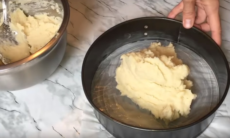 3. Formę do pieczenia wyłóż papierem do pieczenia i wysmaruj olejem. Połowę puree ziemniaczanego wyłóż na dno formy, jako pierwszą warstwę, a na nie podsmażone mięso i resztę puree. Wygładź ostatnią warstwę ziemniaków i ponakłuwaj nożem w kilku miejscach. Na koniec, posmaruj całość kwaśną śmietaną.