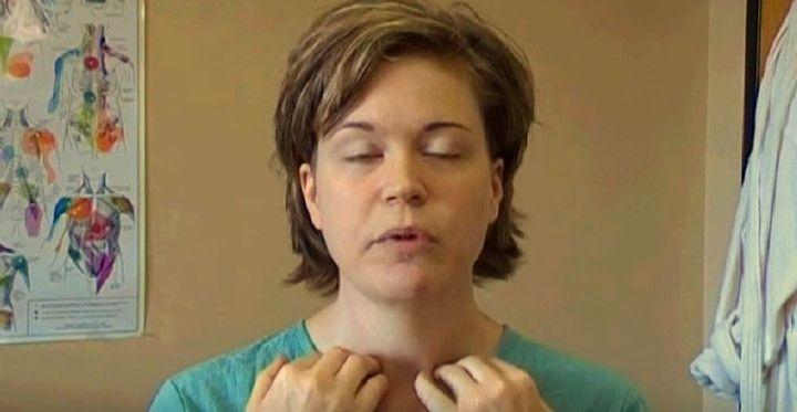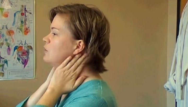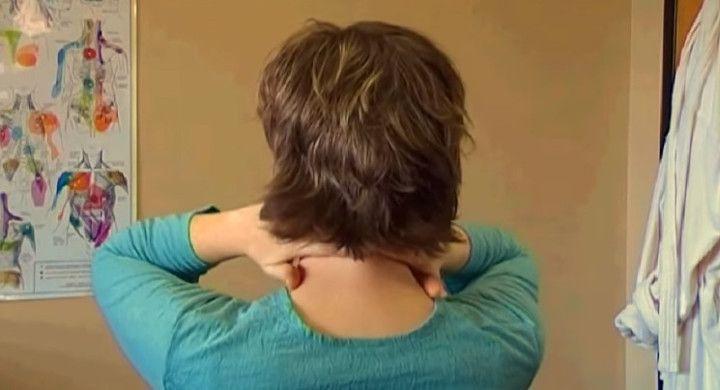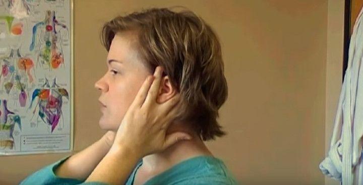 A więc kładziemy ręce na karku i przesuwamy je podobnie jak przy masażu obojczyka.