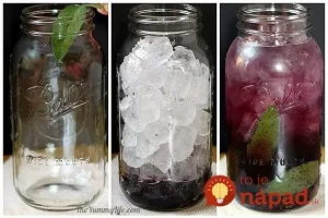 Zmiksuj szałwię z jeżynami, dodaj lód i wymieszaj. Zalać wodą.