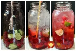 Limonki pokroić na ćwiartki i włożyć do szklanki razem z malinami. Rozgnieć rączką chochli, dodaj lód i ponownie ugnieć. Zalać wodą.
