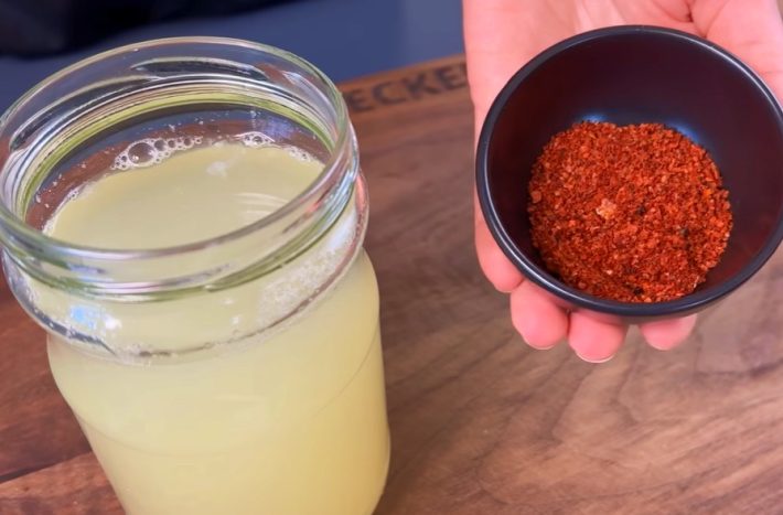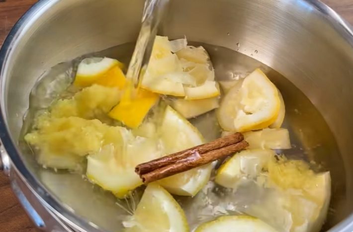 Cytrynę należy dobrze umyć, przekroić na pół, wycisnąć sok i resztę pokroić w kawałki. Imbir obieramy i trzemy na tarce. Wszystko to wrzucamy do garnka, dodajemy wodę i cynamon. Gotujemy do wrzenia, następnie zdejmujemy z ognia i pozostawiamy do ostygnięcia. Odcedzamy płyn, mieszamy z sokiem z cytryny i słodką papryką.