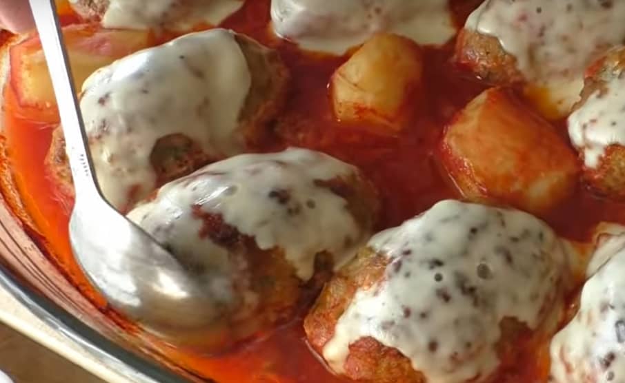 Całość polać sosem pomidorowym i włożyć do rozgrzanego piekarnika. Pieczemy w 180-200 stopniach przez około 40 minut. Następnie wyciągamy blachę do pieczenia. Połóż plasterki sera na każdym kawałku.