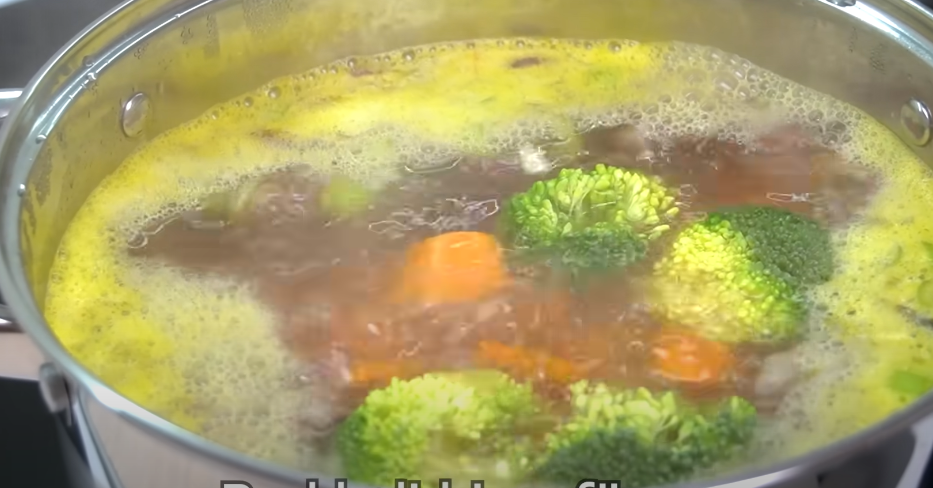 • Dodaj 1,2 litra wody (6 szklanek) i 1 litr bulionu warzywnego (5 szklanek) do garnka.