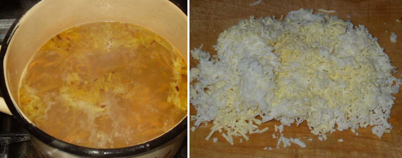 1. Umytą i obraną marchewkę, zetrzyj na tarce o grubych oczkach, obraną cebulę pokrój w drobniutką kosteczkę. Obrane i umyte ziemniaki pokrój w kostkę, jajka ugotuj na twardo.